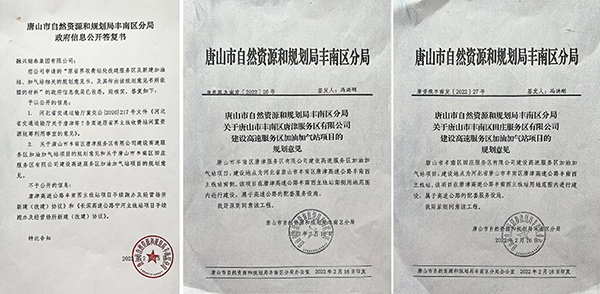 河北省国有资产监督管理委员会给出的答复是,加油站建设经营方唐山市丰南区田庄服务区有限公司已经属地自然资源和规划部门批准,同意该工程建设,并向属地行政审批部门备案(备案编号:丰审批投备字〔2022〕23号)。