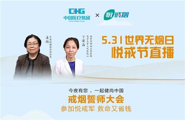 2021年5月31日——第34个世界无烟日·中国悦戒节,中国医疗集团承诺戒烟在线誓师大会,悦戒军团小程序2.0发布,悦戒真实世界临床研究启动。
