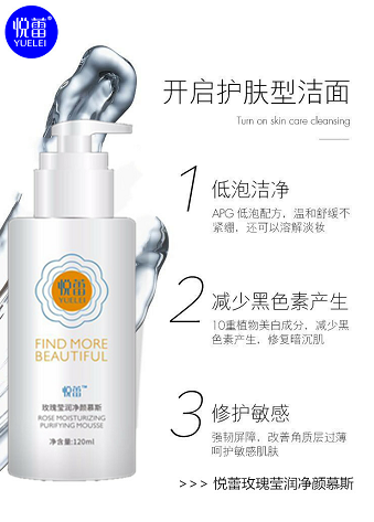 悦蕾玫瑰莹润净颜慕斯:温和清洁控油 改善暗