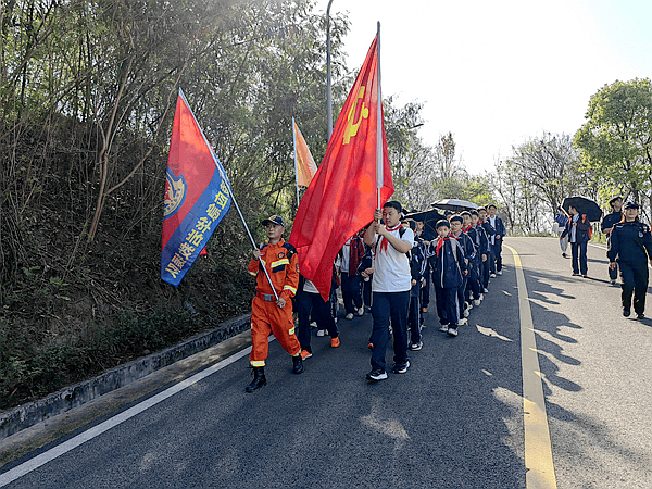 3月29日,重庆市涪陵区应急管理局华岩救援队28名队员携带急救药品及装备,全程为参加涪陵实验中学教育集团二十一中学校举办“拥抱春天 放飞梦想”春季踏青徒步活动的1200名师生提供随行保障。
