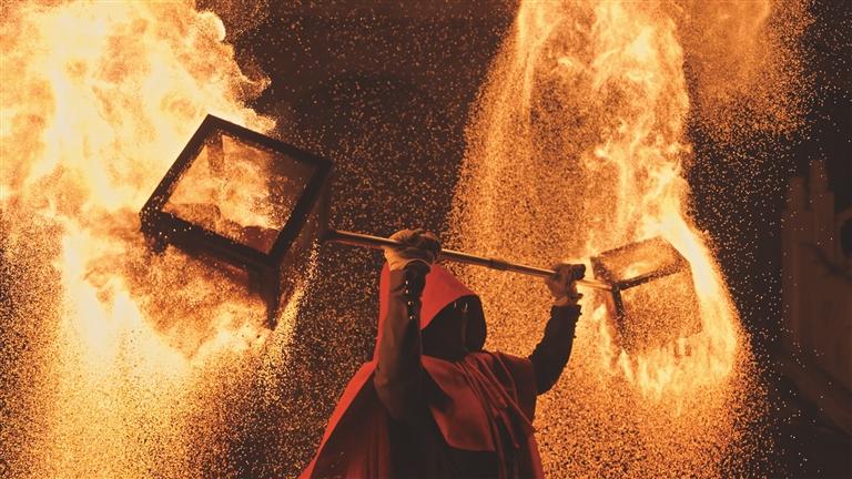 火壶艺术。中国人耍火有多震撼?非遗火壶与古老傩舞相融合,呈现凤凰涅槃,浴火重生般的视觉盛宴,仿若东方神秘的火焰魔法。