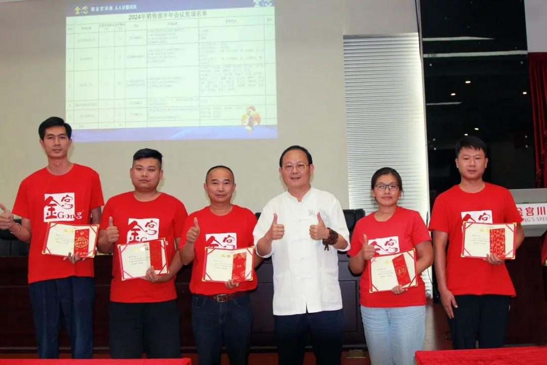 营销团队中有这么一些个人和团队,他们以勤奋诠释追求,用团结描绘梦想,以纪律奠定成功,用创新拥抱市场,他们是我们的榜样,是金宫前进的桥梁。在一片高潮迭起的掌声中,龚永泽董事长及营销中心相关领导,亲自为过去半年中表现优异的销售团队和优秀个人颁发了荣誉证书及丰厚奖励。每一份荣誉背后,都是无数次的突破与尝试,是夜以继日的奋斗与坚持。我们也希望,未来有更多的金宫人能获得这些奖项,共同将金宫做的更大更强。