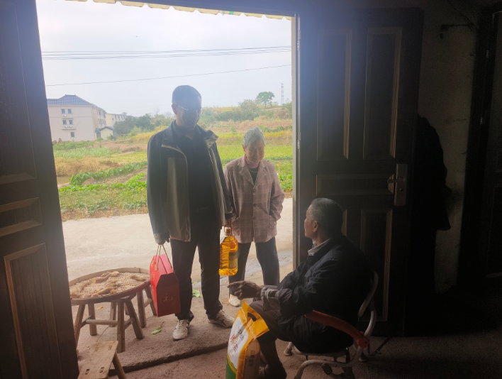 活动中,工作人员先后前往五都镇六都居、兰田村,分别走访慰问了孤寡老人余礼奀与叶修发。每到一户,工作人员都与老人促膝长谈,细致询问老人的身体状况、生活需求与日常照料情况,耐心倾听老人的心声,用拉家常的方式传递关怀;同时为老人送上精心准备的节日礼物,叮嘱老人注意秋冬季节保暖,保重身体,有困难及时反映。